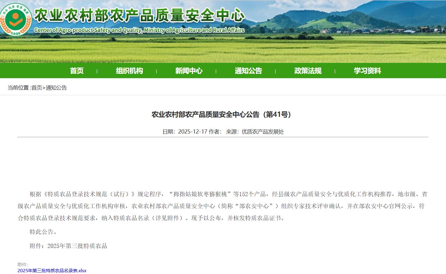 近日,“农业农村部农产品质量安全检验测试中心公告(第41号),公布了2025年第三批全国名特优新农产品和特质农品名录,北京有“6+1”个特色农产品榜上有名。我校张秋芝教授团队研究培育的北白糯601糯玉米入选国家“特质农品”名录。